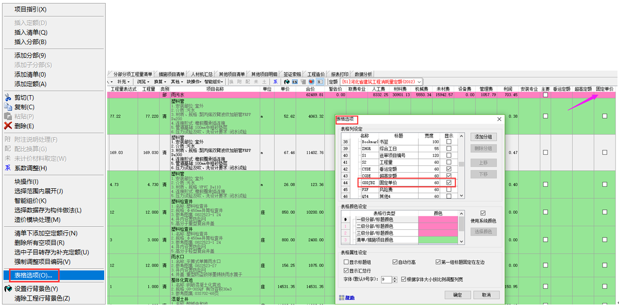 答:分部分項界面右健,表格選項,找到固定單價,把顯示勾選上,回到分部分項界面哪個清單要固定,在對應的后面列勾選 。