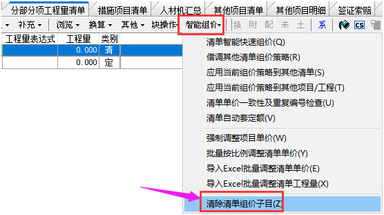 答:點擊智能組價按鈕下的清除清單組價子目,一鍵實現。