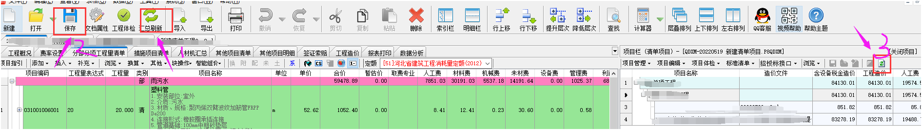 答:針對與p8qdxm的非單文件項目工程,它是跟單位工程數據聯動的。如果出現了數據沒有同步匯總,需要按照以下步驟操作。 第一步打開單位工程點擊匯總刷新,然后點擊保存。如果保存按鈕是灰顯,說明數據可能沒有變化會導致正常匯總不了。可以采取隨便改動一下數據再改回的方法,在保存按鈕綠顯的狀態下點擊保存。所有單位工程都刷新保存了之后,關閉單位工程,最后一步就是回到項目工程中點擊重新提取數據。 如下截圖所示: