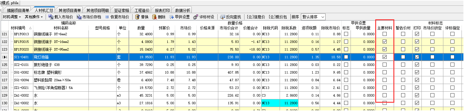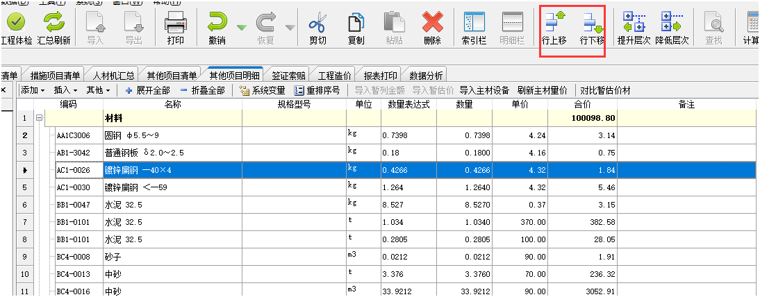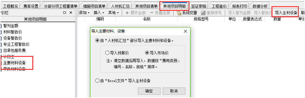 答:人材機界面勾選主要材料標志后,切換到其他項目明細界面,點擊導入主材設備,在這個界面可以上下行移動排序。