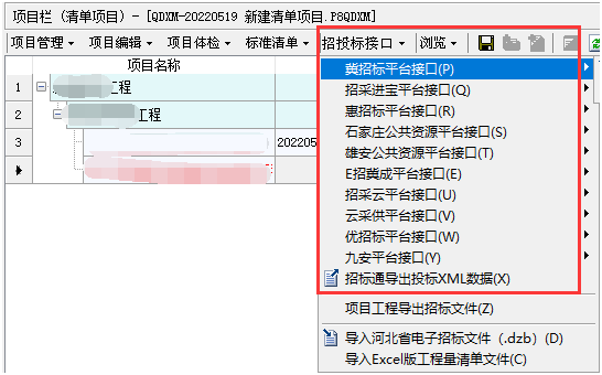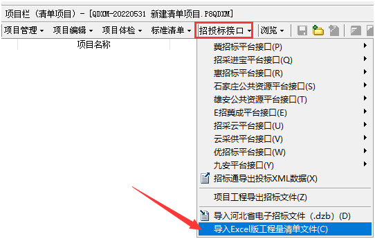 答:在建好的項目工程中,點擊招投標接口中的“導入Excel版工程量清單文件”按鈕,如下圖所示: